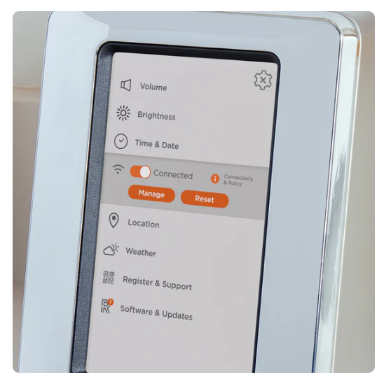Conectar-se ao Wi-Fi permite visualizar a previsão do tempo em tempo real e ajustar automaticamente a data e a hora. Comece o seu dia sem o celular e pare de ter que ajustar os relógios por causa do horário de verão ou de quedas de energia.